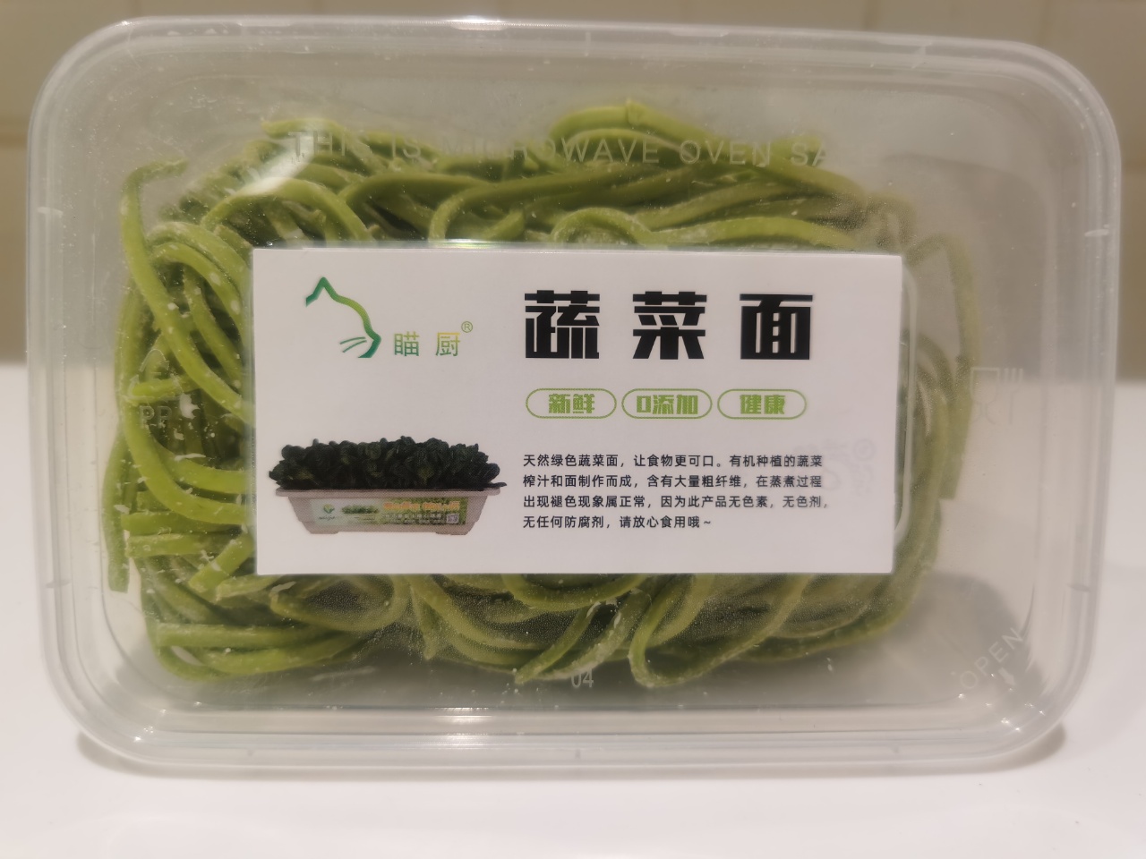 瞄厨蔬菜鲜面【不加滴水】一款只有蔬菜汁和面粉 的蔬菜面,VC丰富营 养好吸收,满满浓郁的蔬菜绿,赏心悦目 好吃不胖。让面食生活添蔬加彩。取材于我们本土自有有机标准种植的蔬菜基地,新鲜又便捷,确保蔬菜面更新鲜营养。